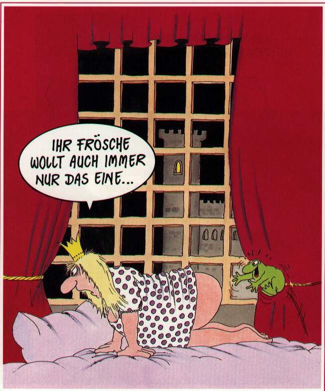 Keine Reaktion. Als er abends in der Kneipe den Frosch vorführt, wird der Programmierer gefragt, warum er den bettelnden Frosch nicht erhört?