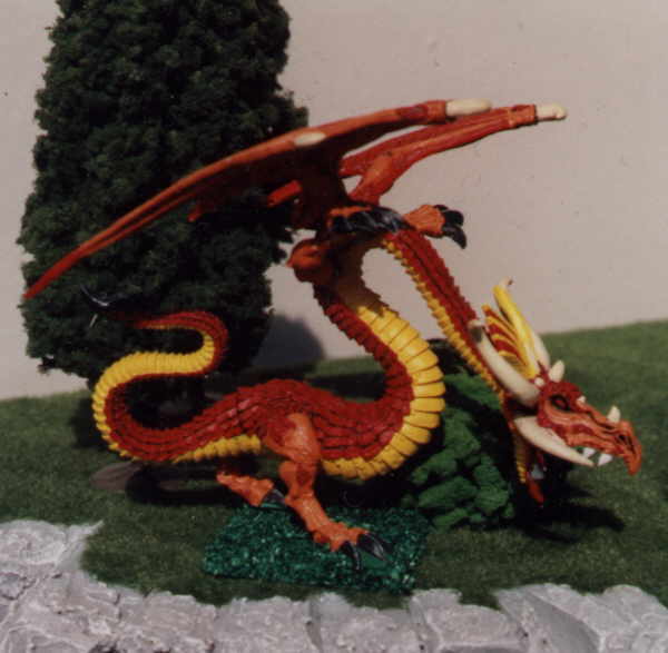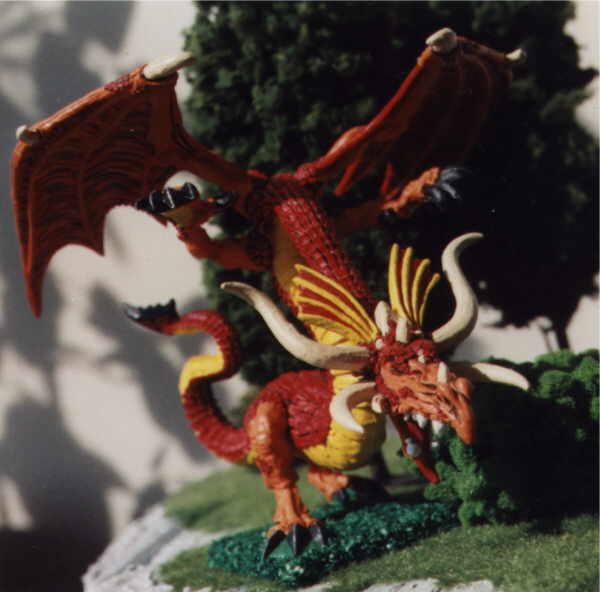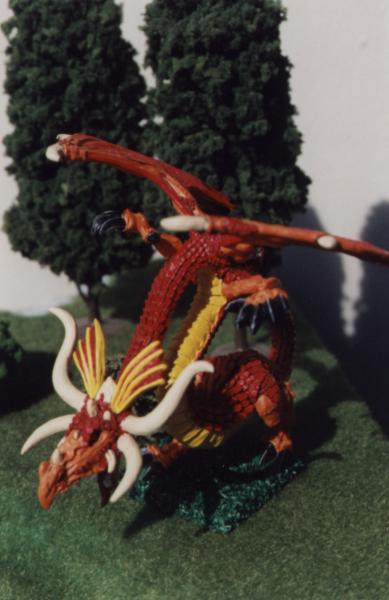 Leider habe ich bisher nur Scans von drei Photos meines Roten Drachen. Er ist etwa 9 cm gross und vollständig aus Zinn. Es fehlt noch der Drachenreiter, der aber noch unbemalt ist. Mehr zu Warhammer findet ihr im .